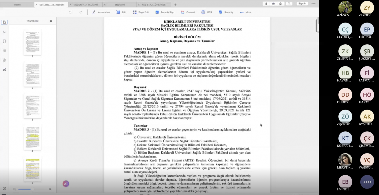 Ebelik Bölümü Uygulamalı Eğitim Komisyonu tarafından, yaz stajlarına yönelik bilgilendirme toplantısı 12 Mart 2026 tarihinde saat 12.00’de çevrim içi olarak gerçekleştirildi.